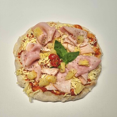 OVEN VOORVERWARMEN 8 MINUTEN 220 GRADEN ,BROOD KAAS, PIZZASAUS, OREGANO, HAM, BASILICUM, AMBACHTELIJKE PIZZABODEM 72 UUR LANG GERUST VOOR MAXIMALE FERMENTATIE. GLUTEN, MELK, MOSTERD, SOJA, LUPINE