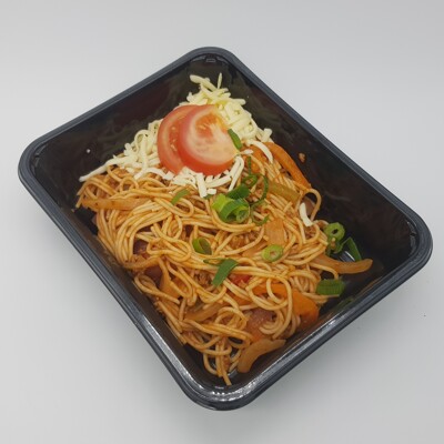 spaghetti, gehakt, tomatenpuree, tomatensaus, bosui, tomaat, kruiden, ui, champignon, paprika