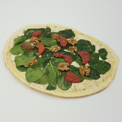 FLAMMKUCHEN ROOMKAAS SPINAZIE ZONGEDROOGDE TOMAATW