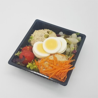 rundvlees salade, wortel, tomaat, augurk, zilverui, ei